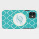 Le jaune et le coque iphone décoré d'un monogramme d'aqua avec un quatrefoil conçoivent !