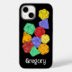 Ce boîtier de téléphone cellulaire présente des illustrations colorées de dés de style jeu d'imaginaire avec des dés 4 faces, 12 faces et 20 faces. En dessous du graphique est un spot pour ajouter un nom ou un autre texte personnalisé. Parfait pour les fans de différents jeux de RPG et de jeux de société.