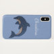 Ce boîtier de téléphone iPhone X est bleu clair avec un joli dauphin bleu et blanc de l'océan avec une texture étincelante en position de saut. Customisez votre nom avec le modèle.