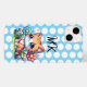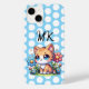 Un adorable chaton assis dans un bouquet de fleurs bleues et roses avec des pois blancs étui de téléphone personnalisé.