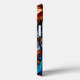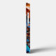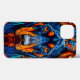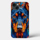 Représentation frappante et vivement colorée du visage d'un chien, probablement un Doberman. Le pelage du chien est représenté dans des bleus profonds et des oranges vibrants, créant un contraste audacieux et artistique. Les yeux sont intensément lumineux, attirant l'attention du spectateur, et la composition globale donne une impression de profondeur et de texture.