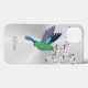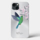 Joli colibri vert coloré avec des fleurs de cerisiers roses sur un faux arrière - plan floral brillant à feuille d'argent. Customisez-le avec votre nom dans un élégant script manuscrit.