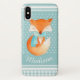 Cute boule blanc renard bouffe coque blanc aqua. Customisez avec le nom de votre choix. Il lit actuellement Madison. Uniquement conçu et peint en aquarelle par Sarah Trett pour www.mylittleeden.com