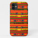 Ce boîtier téléphonique a un design Junetten de bandes rouges, vertes et jaunes avec chaînes de poignet cassées et le mot "Junetten" se répétant tout au long de la conception.
