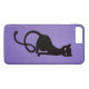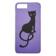 Le coque iphone gothique de minou avec une belle illustration d'un chat noir mauvais aimable avec rougeoyer observe sur une montre de nuit dans la brume pourpre foncée. Cette conception noire de caisse de minou fera un grand cadeau pour une personne d'amoureux des chats.