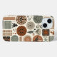 Ce coque mobile dispose d'un motif éclectique et dynamique, mêlant formes géométriques, éléments naturels et motifs abstraits. Les couleurs sont terreuses comme le marron, le beige et le vert, créant une atmosphère chaleureuse et accueillante. Le motif est complexe et détaillé, le rendant visuellement intéressant et unique.