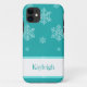 Whimsical and fun Let it Snow Coque-mate Barely There i iPhone 5 Coque en turquoise avec une cascade de flocons de neige dessinés à la main. Ce coque iphone amusant gardera votre téléphone protégé avec une ambiance de vacances ou d'hiver. Facile à customiser, ajoutez simplement le texte personnalisé de votre choix.
