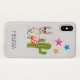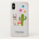 Boîtier téléphonique personnalisé illustré par un joli lama portant des lunettes de soleil en forme de coeur. Quelques étoiles, un champignon et un cactus vert complètent l'illustration. Whimsical et mignon.