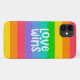 Cette oeuvre présente un arc-en-ciel coloré avec les mots Love Wins.