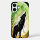 Grand loup noir hurlant et pleine lune brillante avec le design de l'ombre de loup-garou.