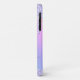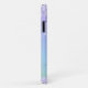 Boîtier de téléphone brillant avec fausse parties scintillant violet qui coule du haut contre un arrière - plan pastel rose pastel, violet, bleu et vert unicorne arc-en-ciel. Personnalisez avec votre nom dans un script mauve design et tendance avec des swashes.