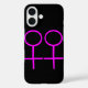 Ce coque iphone génial est conçu pour les lesbiennes. Il comporte deux symboles féminins roses côte à côte. L'arrière - plan est noir.