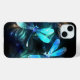 Deux libellules transparentes, lumineuses, turquoise, artistiquement dessinées sur l'arrière - plan de nuit avec des algues luminescentes et des lucioles. libellule éclatante.