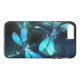 Deux libellules transparentes, lumineuses, turquoise, artistiquement dessinées sur l'arrière - plan de nuit avec des algues luminescentes et des lucioles. libellule éclatante.