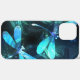 Deux libellules transparentes, lumineuses, turquoise, artistiquement dessinées sur l'arrière - plan de nuit avec des algues luminescentes et des lucioles. libellule éclatante.