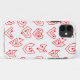 Ce boîtier téléphonique a un design moderne de Valentine du milieu du siècle, avec des labyrinthes de coeur rouge éparpillés sur un champ de blanc.