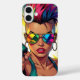 Une femme colorée vibrante en lunettes de soleil arc-en-ciel Lexique Lesbienne Mohawk Uppercut Pop Art étui téléphonique.