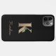 Élégant boîtier de téléphone noir dispose d'un monogramme botanique en or au centre.