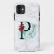Coques Case-Mate iPhone Lettre florale P de Merlot marine personnalisée av