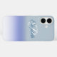 Ce design coque iphone présente un arrière - plan bleu pastel à l'ombre avec un nom de script bleu foncé et un monogramme blanc de lettre initiale. Personnalisez facilement les champs de texte, supprimez le texte ou modifiez-le à l'aide de l'outil de conception pour sélectionner un style de police, une taille et une couleur que vous souhaitez.