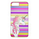 Coque iphone personnalisé customisé de licorne barré par sucrerie d'arc-en-ciel. Créez un cadeau personnalisé pour des anniversaires et des occasions spéciales.