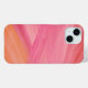 Un coque iPhone 15 coloré et moderne avec une aquarelle créative avec des lignes et des rayures dans les tons rose, corail, magenta, orange et jaune moutarde.