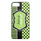 Pois modernes personnalisés vert citron, noir et blanc avec bandes Barely There™ iPhone 7 coque.