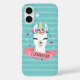 Ajoutez une touche de fantaisie magique à votre téléphone avec ce mignon coque qui met en vedette une adorable créature imaginaire — le llamacorn ! Notre mignonne caricature kawaii llama unicorn sport une corne de licorne, couronne de fleurs, et des cils luxuriants avec une bannière rose portant son nom, sur un ton aqua sur ton rayé arrière - plan. Un design amusant, mignon et original pour les amateurs de lama, les amateurs de licorne ou les amateurs de créatures magiques ou d'animaux hybrides imaginaires.