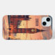 Ce coque iPhone 15 présente une illustration représentant l'horizon londonien. L'aménagement est décoré dans des tons chauds et relaxants. Ce coque est très agréable pour les amateurs de voyage et les amateurs britanniques.