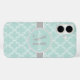 Motif de style quatrefoil marocain élégant et sophistiqué en turquoise clair / menthe, gris et blanc pour vous de personnaliser avec votre prénom et dernier initial. Créé par Holiday Hearts Designs pour HHTrendyCases.