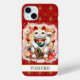 Coques Case-Mate iPhone Lucky Cat With Red Flowers Monogrammed