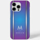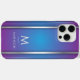 Une élégante coque iphone abstraite de style luxueux au design géométrique violet et bleu. Personnalisez avec votre monogramme et votre nom.