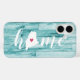 Montrez un peu de fierté de l'état de la maison avec ce mignon étui de téléphone en faux bois turquoise rustique avec "home" en écriture calligraphique blanche avec une carte silhouette de l'état du Maine debout pour la lettre "O." Une illustration de coeur rose à l'intérieur de la carte d'état complète la conception; vous pouvez changer la position du coeur à votre ville d'origine en ouvrant l'outil de conception et en faisant glisser la forme du coeur à votre endroit préféré!