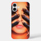 Cette boîte téléphonique a une photo d'une femme aux mains maléfiques autour de son visage.
