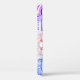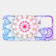 Un étui téléphonique blanc au design mandala qui passe du violet au bleu en bas, avec un motif central fleuri en rouge, orange et blanc.
