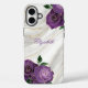 Marbre blanc Floral violet iPhone 16 Plus Coque. Élevez votre iPhone avec cette couverture élégante caractéristiques personnalisées nom dans les lettres de script. C'est un design luxueux de marbre blanc et or chic, accentué de roses floraux vert émeraude et or. Inspirés par la beauté intemporelle des pierres précieuses et des géodes, les tourbillons en marbre d'un blanc immaculé et d'or chatoyant créent un décor sophistiqué. Les riches roses vert émeraude aux délicats accents dorés apportent une touche d'opulence et de grâce naturelle, faisant de ce coque un mélange étonnant de luxe moderne et de charme organique. Conçu pour le style et la protection, ce coque mince et durable protège votre téléphone tout en présentant un design qui conviendra parfaitement aux amateurs d'esthétique fine et d'élégance inspirée de pierres précieuses. Un accessoire incontournable ou un cadeau réfléchi pour toute personne qui apprécie la beauté et la sophistication.