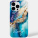 Marbre d'or bleu moderne Nom personnalisé iPhone 14 Pro Max Coques dispose de votre nom personnalisé dans une élégante typographie de script de calligraphie sur un arrière - plan moderne en marbre bleu et or. Un cadeau parfait pour elle pour l'anniversaire, maman pour la fête des mères, soeur ou bestie pour Noël et les vacances. Conçu par ©Evco Studio www.zazzle.com/store/evcostudio