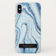 Protégez votre coque avec une coque iphone en marbre moderne et élégante. Le coque iphone tendance présente un design abstrait en marbre bleu et blanc avec un espace réservé pour votre nom ou texte personnalisé.