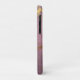 Ce boîtier de téléphone portable moderne et élégant présente un arrière - plan en marbre mauve violet avec de l'or doré simulé. Près du fond se trouve un symbole de Fleur-de-lis en or que vous pouvez enlever si vous préférez. Vous pouvez le customiser pour ajouter votre nom, vos initiales, votre monogramme ou votre photo.