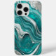 Coque iphone élégant utilisant des tons vert turquoise avec argent met en évidence marbre courant motif