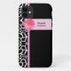 Un cas de l'iPhone 5 de la mode des femmes élégantes à peine là avec un motif noir et blanc à la mode de girafe embelli avec une fleur rose girly de marguerite. Personnalisez en ajoutant votre nom à cette conception moderne. Perfectionnez pour le fashionista chic.