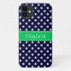 Coques Case-Mate iPhone Marine Blue Wt Polka Dot Emerald Nom vert Monogram