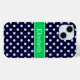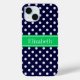 Coques Case-Mate iPhone Marine Blue Wt Polka Dot Emerald Nom vert Monogram