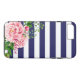 Cas customisé de l'iPhone 7 : Roses floraux roses chics de pays/marine et arrière - plan de rayures de blanc/assez personnalisation de manuscrit de typographie