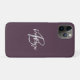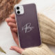 Cette élégante coque de téléphone personnalisée comporte un monogramme et un prénom en écriture grise et blanche moderne sur un fond violet prune tendance.