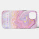 Cet élégant coque iphone est décoré de strates marbrées dans les tons mauve et lavande avec des veines de parties scintillant et de feuille d'or. Ajoutez votre nom pour une touche personnelle.