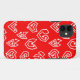 Ce boîtier téléphonique a un design moderne de Valentine du milieu du siècle de labyrinthe de coeur blanc sur un champ de rouge.