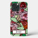 Mignonne moderne Fleurs rouges brillantes Mint iPhone 13 Pro Coque | Mignonne Moderne Fleurs rouges brillantes inspirées par les cadeaux Tiffany pour elle pour Jennifer | Ajouter un nom
