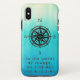 Turquoise Ombre Sea iPhone XS Max Coque. Un rose de boussole nautique pour garder vos roulements océaniques. Profitez de l'effet d'illusion d'optique design de l'arrière - plan à l'ombre. Gardez la citation "Dans les vagues de changement nous trouvons notre véritable direction" ou ajoutez un nom, un sentiment ou un monogramme pour customiser. Soyez personnalisé, soyez unique, soyez vous dans un style fabuleux!