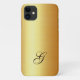 coque de protection iPhone dans un design de luxe faux or avec un premier personnalisable dessus.
